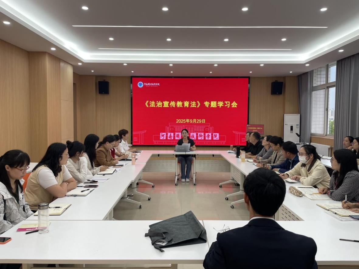 为深入学习宣传和贯彻实施《中华人民共和国法治宣传教育法》,全面提升思政课教师法治素养,营造尊法学法守法用法的良好氛围,9月29日下午,马克思主义学院在勤业楼510会议室召开了《法治宣传教育法》专题学习会。会议由副院长胡海涵主持,全体思政课教师参会。
