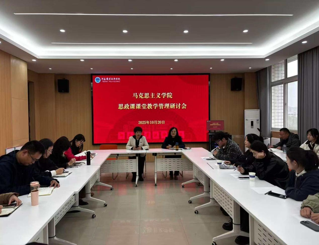 为贯彻落实学校《关于进一步加强学风建设的实施意见》的通知要求,提升思政课的教学质量与育人效果,优化思政课课堂教学管理的路径,10月20日下午,马克思主义学院在勤业楼510室召开思政课课堂教学管理研讨会。全体思政课教师及学生代表参加会议,会议由马克思主义学院副院长胡海涵主持。