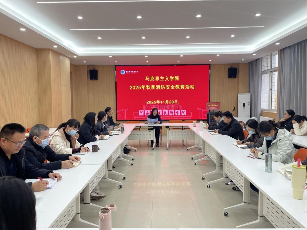 为深入宣传贯彻习近平总书记关于应急管理的重要论述和消防工作重要指示批示精神,切实提升师生消防安全意识,筑牢校园安全屏障,11月24日下午,马克思主义学院组织开展了秋季消防安全教育活动,活动由马院副院长胡海涵主持,全体教师参会。