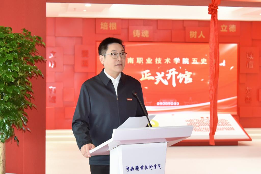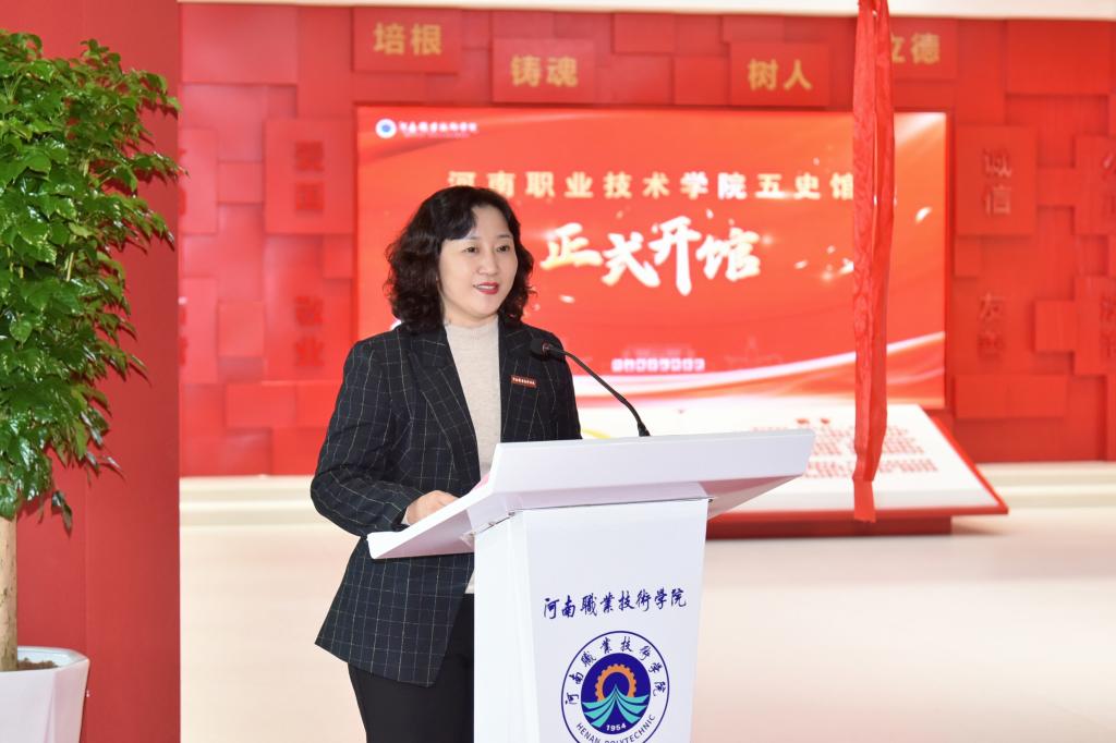 夏新颜在介绍“五史馆”建设情况时指出,谋划建设“五史馆”,是学校党委立足职业教育发展新方位、顺应教育数字化趋势作出的重要决策,核心目标在于深化思政课改革创新、打造特色思政教育品牌、构建优质教学资源矩阵,为建设集历史展示、思想引领、文化传承于一体的综合性实践教育平台奠定关键支撑。今后“五史馆”将成为学校开展理想信念教育、爱国主义教育、党性修养锻炼的核心阵地,成为展示学校党建工作成效、思政教育成果与文化建设水平的重要窗口,成为深化校地协同、拓展社会服务的功能载体,为学校深入推进“新双高”建设、全力创建本科层次职业大学注入坚实思想动能与强大精神力量。