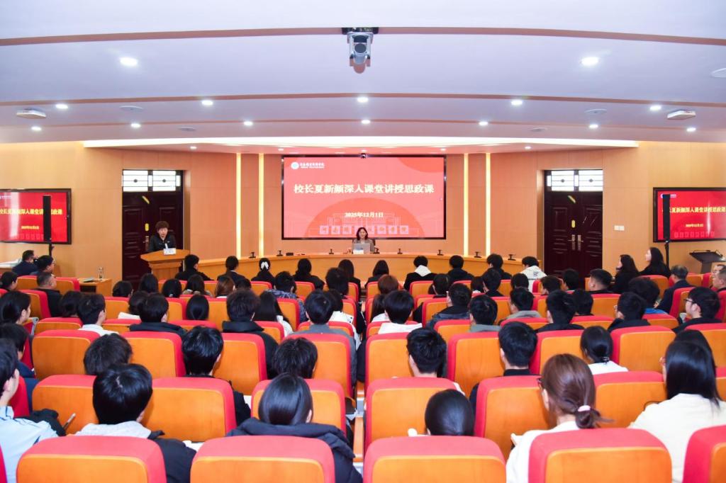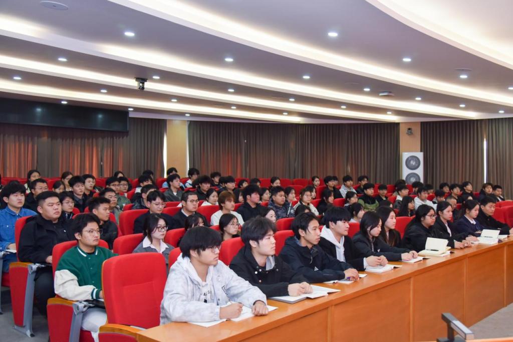12月1日下午,校党委副书记、校长夏新颜以《深学细悟全会精神 传承弘扬抗战精神——奋力书写为中国式现代化挺膺担当的青春篇章》为题,为汽车与交通学院、文化旅游学院青马班学员、新能源253班学生宣讲党的二十届四中全会精神。汽车与交通学院、文化旅游学院副科级以上干部及马克思主义学院思政课教师现场聆听。
