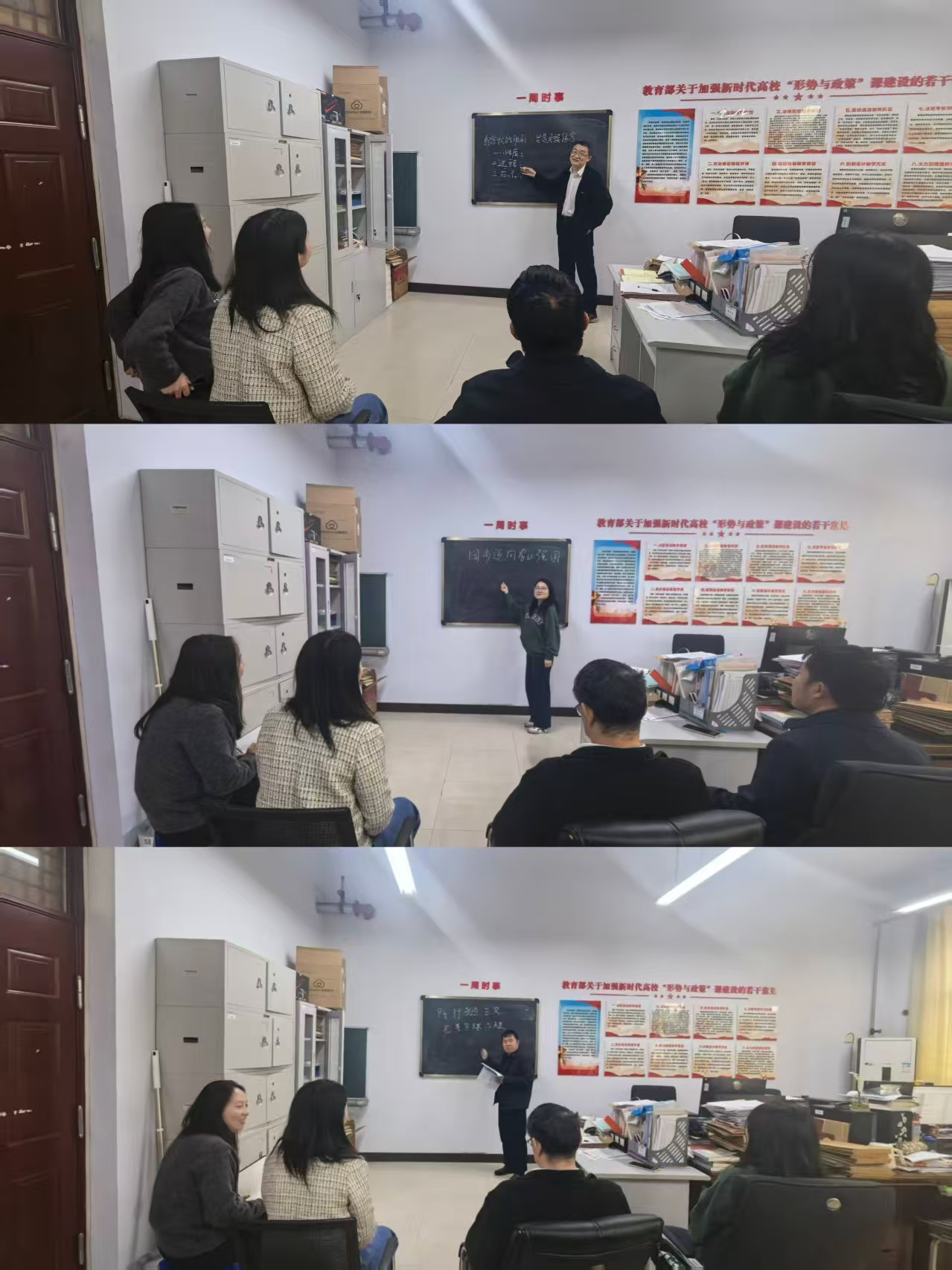10月16日,“形策”教研室在508办公室召开第一轮教学工作总结会。围绕《纪念抗战胜利 坚定民族信念》《阔步迈向农业强国》《践行多边主义 完善全球治理》三大核心专题,授课教师进行了深入的教学实践与探索。李永会、张炜丹、尹炳哲三位老师作为主讲教师代表进行了重点发言,教研室主任吕洛乐主持会议并作总结讲话。